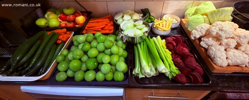 Varză, gogonele, conopidă, sfeclă, gulie, morcov, țelină, castraveți, măr & mini porumb ??