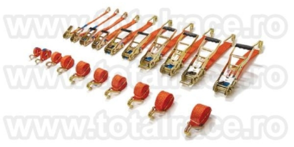 Total Race va ofera cu livrare rapida direct din stoc chinga de ancorare sistem 50A mm cu latime banda 50 mm , lungime 12 metri in conformitate cu EN 12195 – 2 , elongatie 7 % cu clichet Stf 350 daN, din 2 parti , lungime 10 metri , carlige tip gheara duble , din poliester, culoare portocalie, 5 dungi negre. Capacitatea de ancorare este Lc 2500 daN drept si Lc 5000 daN peste incarcatura, eticheta ancorare - date de identificare produs. Chingile textile de ancorare sunt insotite de Declaratie de Conformitate. Se utilizeaza pentru legarea, ancorarea si protejarea marfurilor in timpul transportului, sunt chingi usor de folosit si nu deterioreaza marfa.Contact