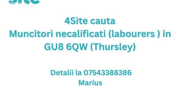 4SIte Recruitment cauta cu incepere imediata muncitori necalificati (Labourers ) pentru un proiect in Thursley GU8 6QW.- Durata : aproximativ o luna